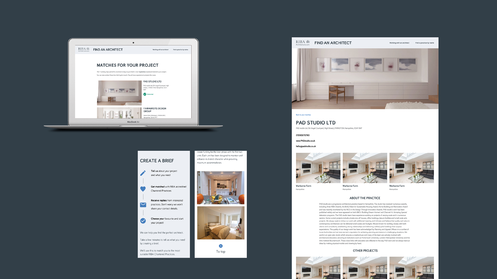 To design a digital experience to help people to find an architect. We had to work within RIBAs guidelines and spacing rules which I was not happy about.