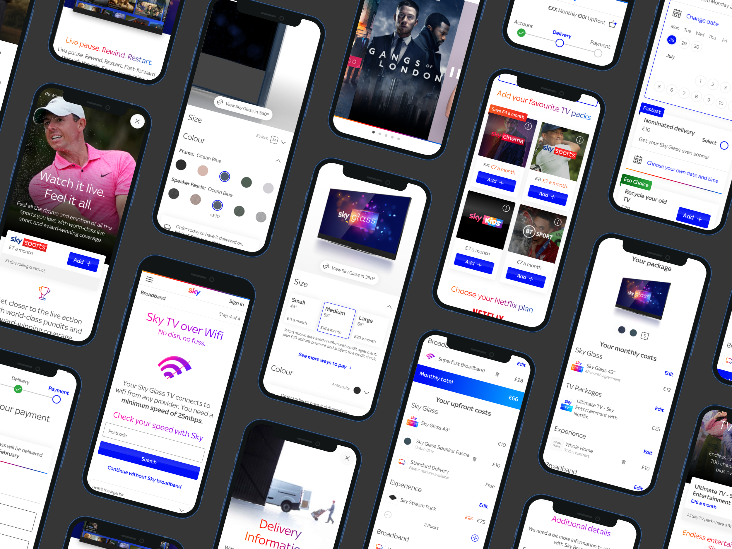 A big part of the project was the ‘Buy’ journey. This is a step by step process with a configurator section where the customer can customise and purchase the TV as well as choose their content package.